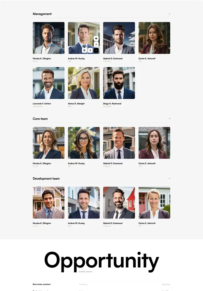 Import a complete property website with one click, or combine 1000+ section blocks to craft a unique showcase for your listings.